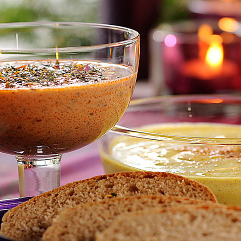 Verrühren Sie Gewürzblütencreme und Natur-Joghurt im Verhältnis 1:1. Mit getrockneten Kräutern und Blüten garnieren und servieren.