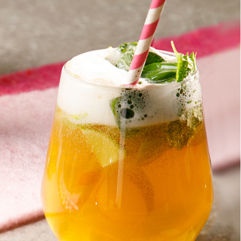 Die Kräuterblätter andrücken, damit sie ihr Aroma entfalten können und mit dem Ingwer in ein Glas geben. Mit Bier und Ginger Ale auffüllen. Je nach Geschmack 1:1 oder 1:2.