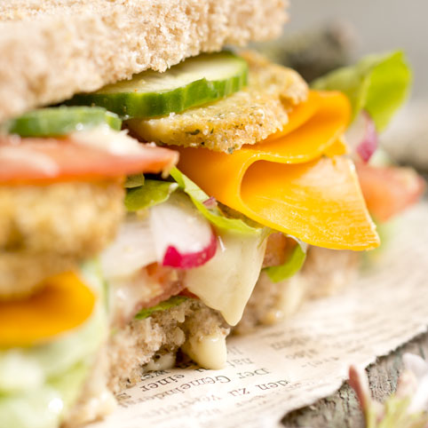 Die Toastscheiben rösten, mit der Mandonaise bestreichen und mit den Falafelscheiben und den übrigen Zutaten belegen.