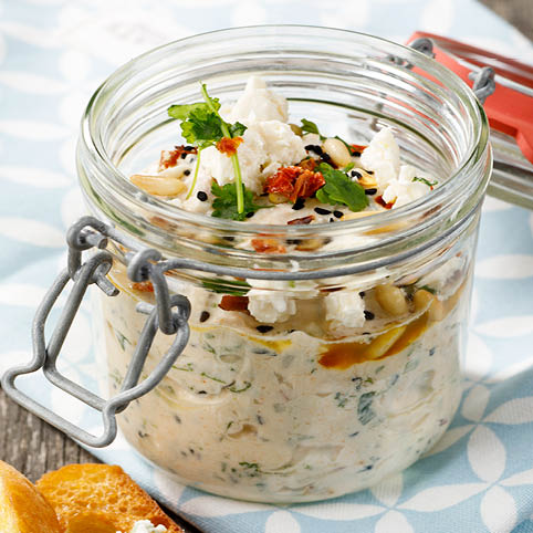 Nach Geschmack mit grobem Chilipulver würzen und die Pinienkerne unterrühren.