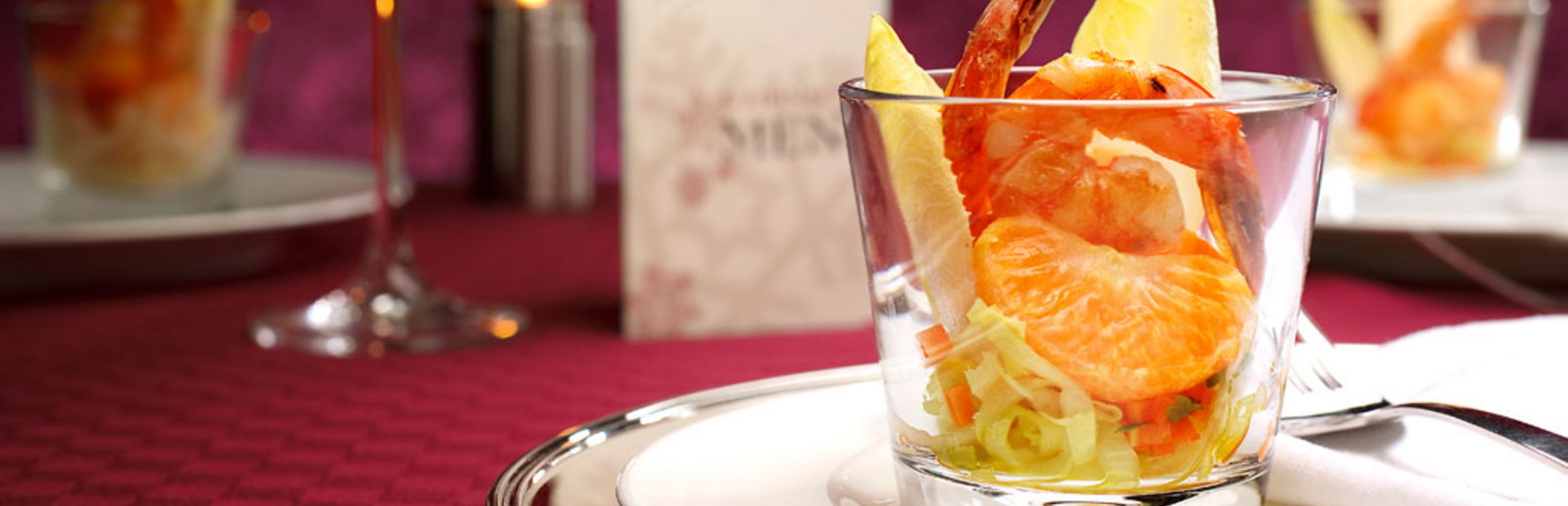 Den Chicoree putzen und in feine Streifen schneiden, die Schalotte fein würfeln. In etwas Öl anbraten und mit Orangensaft, Pfeffer, Salz und Korinandergrün abschmecken. Die Garnelen in Öl anbraten und mit den Mandarinen und dem Chicoree servieren. Dazu Erdnuss-Salsa reichen.