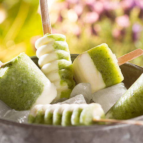 Die Gurke schälen und klein schneiden, Paprika in Stücke schneiden und den Knoblauch putzen. Minz- und Petersilienblätter zugeben und alles fein pürieren. Mit Salz, Pfeffer, Rohrohrzucker und Zitronensaft abschmecken. Den Joghurt mit Salz und Pfeffer würzen und als untere Schicht in ein Eisförmchen oder Schnapsgläschen füllen, darauf das Gurken-Gazpacho geben, einen Stiel (z.B. Holzstäbchen oder dicken Zahnstocher) hineinstecken und für mind. 6 Stunden einfrieren.