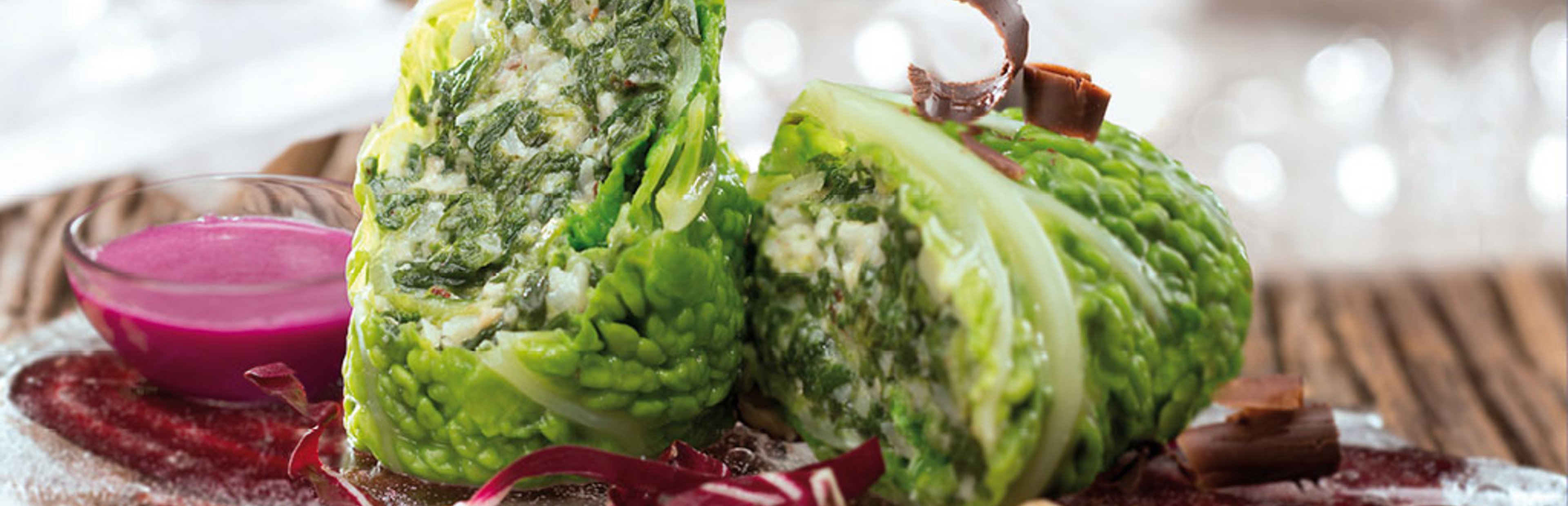 Gefüllte Wirsingröllchen mit Rote-Bete-Soße mit Schokoladennote