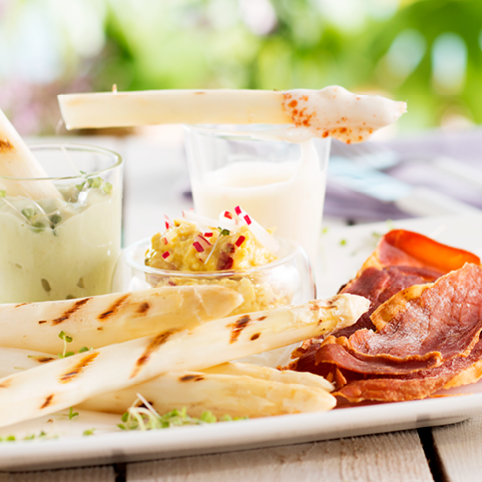 Gegrillter Spargel mit Dips & Chips
