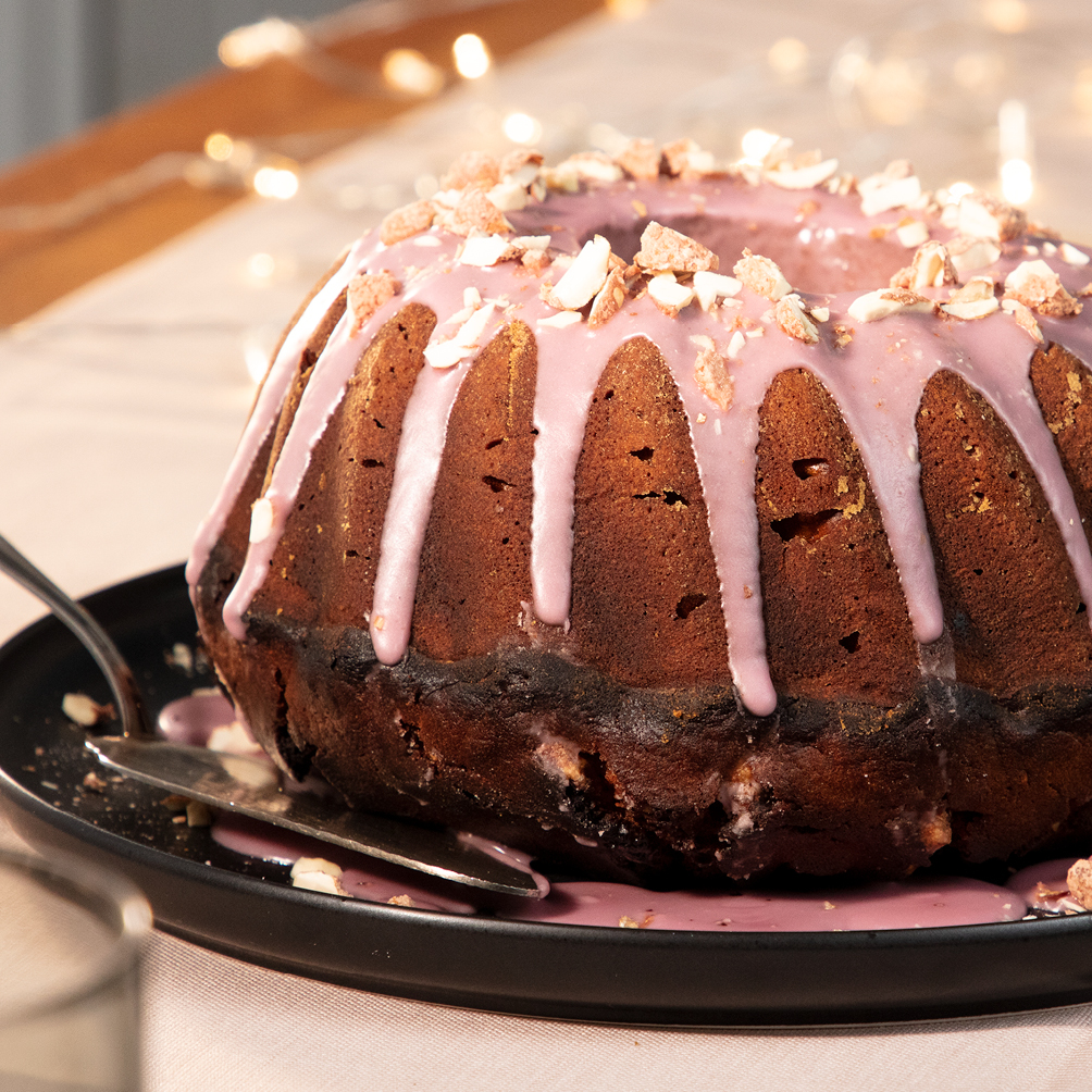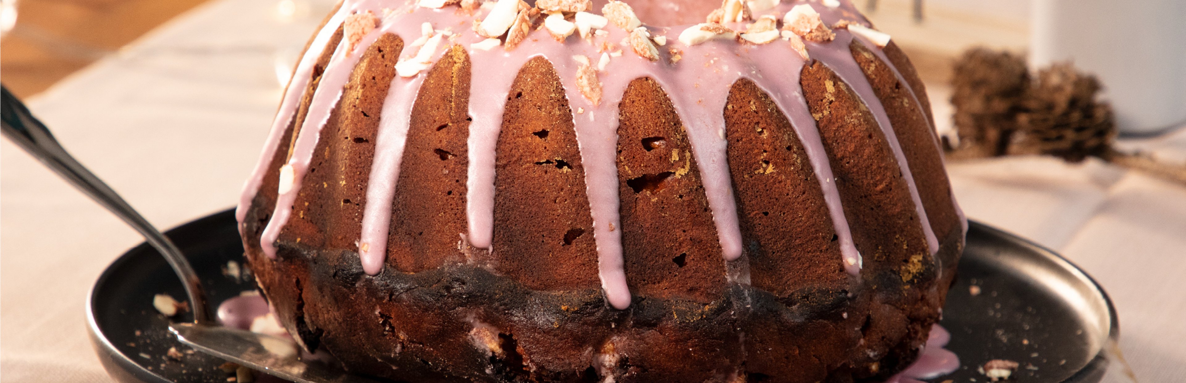 Den Teig in die vorbereitete Gugelhupf-Form geben und im vorgeheiztem Backofen 45-50 Minuten backen. Den Kuchen nach dem Backen abkühlen lassen. Dann auf ein Gitter stürzen. Puderzucker und Glühwein miteinander glattrühren. Den Kuchen mit dem Zuckerguss überziehen, mit den restlichen gehackten, gebrannten Mandeln bestreuen und trocknen lassen.