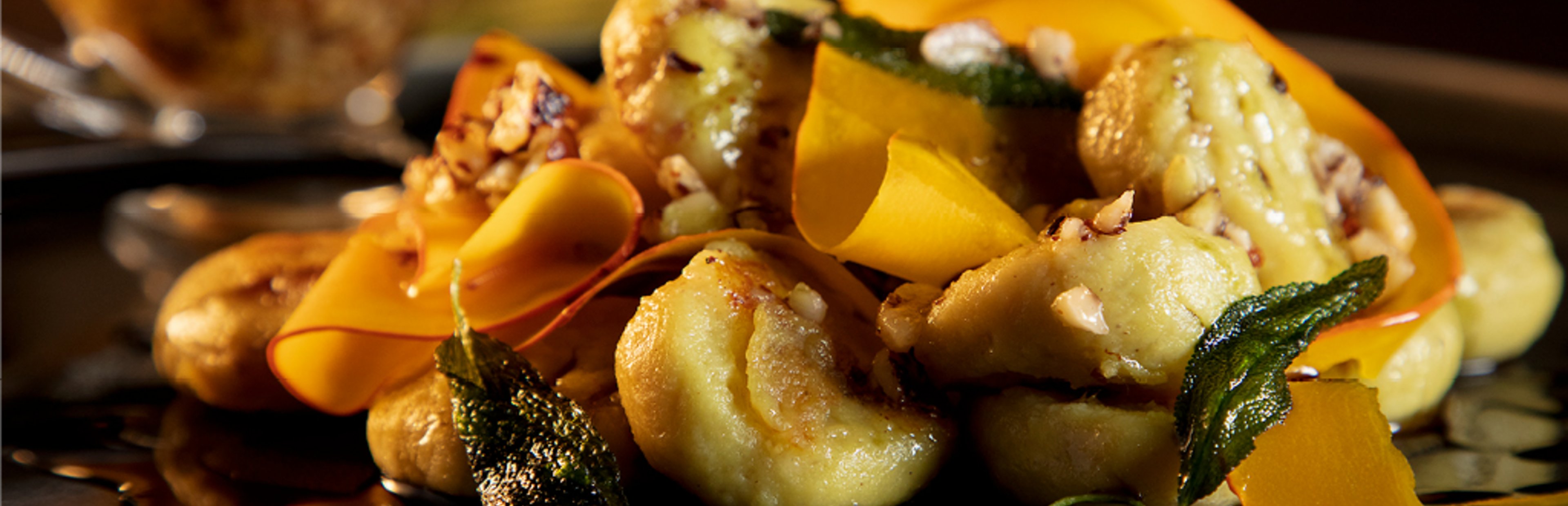 Die Salbeiblätter mehlieren, in etwas Öl und Butter in einer Pfanne bei geringer Temperatur anbraten. Salzen und pfeffern. Auf einen Küchenkrepp geben und abtropfen lassen. Den Kürbis entkernen und mit einem Sparschäler in Streifen hobeln. Die Knoblauchzehen hacken. Butter und Olivenöl erhitzen, die gehackten Haselnüsse bei milder Temperatur leicht anrösten. Den Knoblauch hinzugeben, kurz durchschwenken. Zum Schluss die Kürbishobel dazugeben, nur kurz durchschwenken, die dürfen etwas Biss behalten. Mit Salz und Pfeffer würzen. Den Kürbis und die Salbeiblätter auf den Gnocchi verteilen und mit viel Liebe servieren.