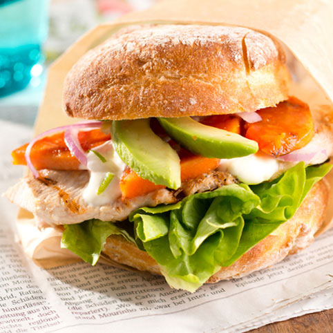Hähnchen-Burger mit Papaya und Limonen-Dressing