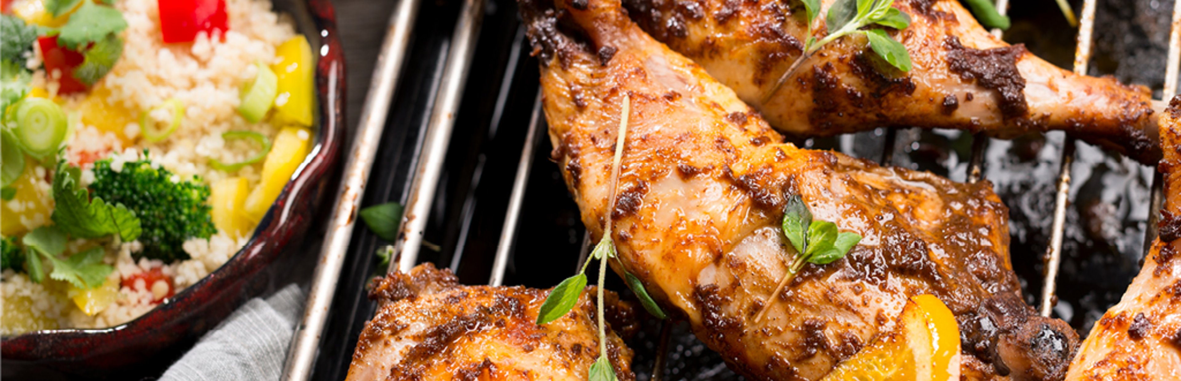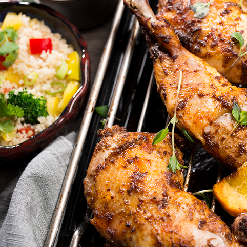Hähnchenkeulen Tandoori-Art mit Gemüse-Couscous und Joghurt