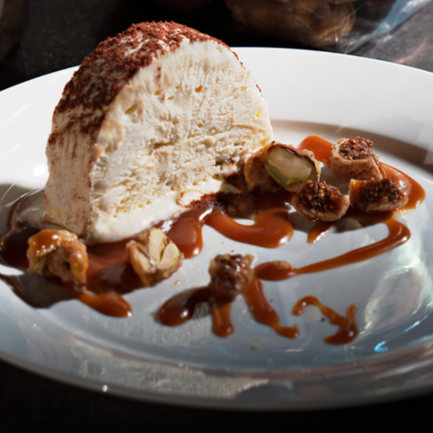 Honigparfait mit Salzpistazien-Karamell