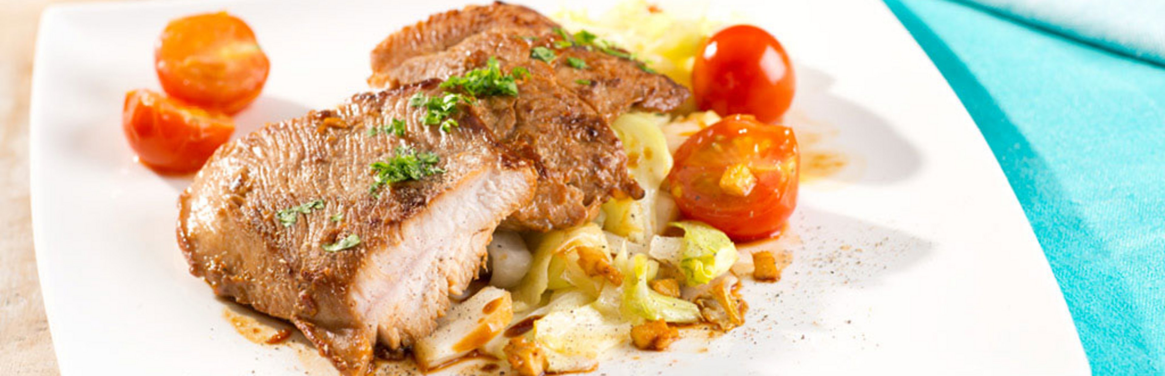 2 EL Öl in der Pfanne erhitzen. Spitzkohl darin 3 – 4 Min. unter Rühren anbraten. Die Marinade und die Tomaten zum Spitzkohl geben und aufkochen. Mit Salz und Pfeffer abschmecken, mit dem Fleisch und der Petersilie anrichten.