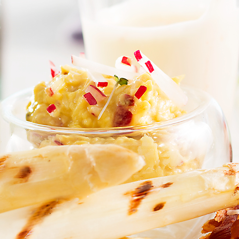 Die Zwiebel in feine Würfel und den Schnittlauch in feine Ringe schneiden.