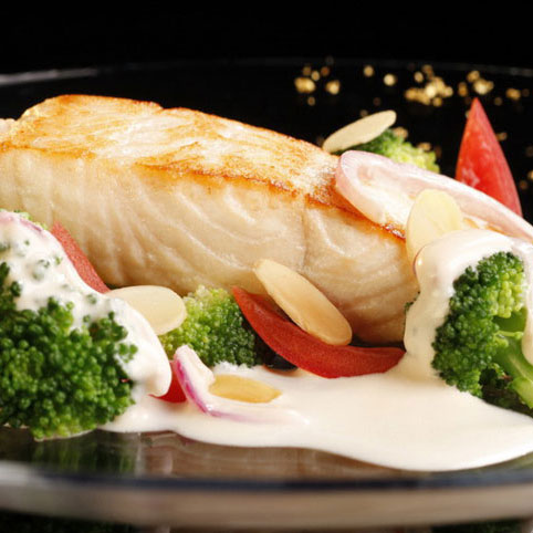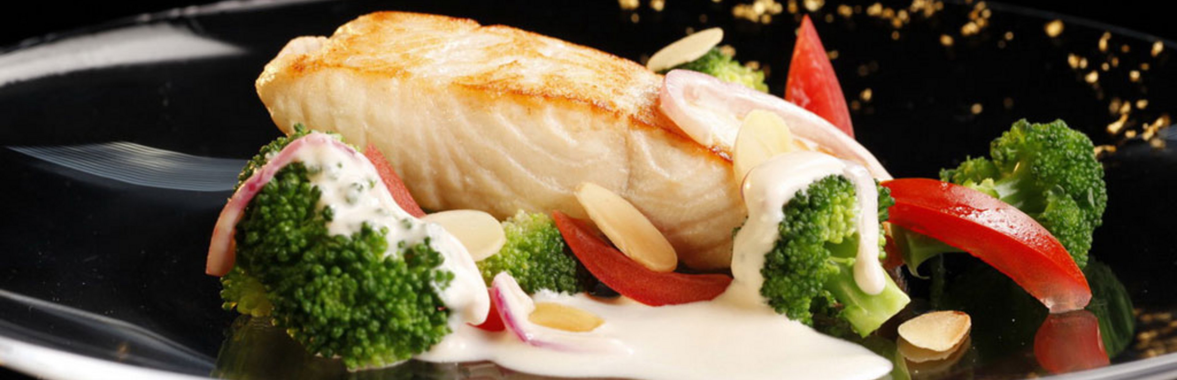 Den Lachs aus der Pfanne nehmen, pfeffern und mit dem Brokkoli und der Sauce servieren.
