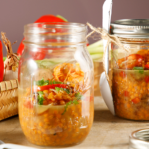 • 300 g rote Linsen