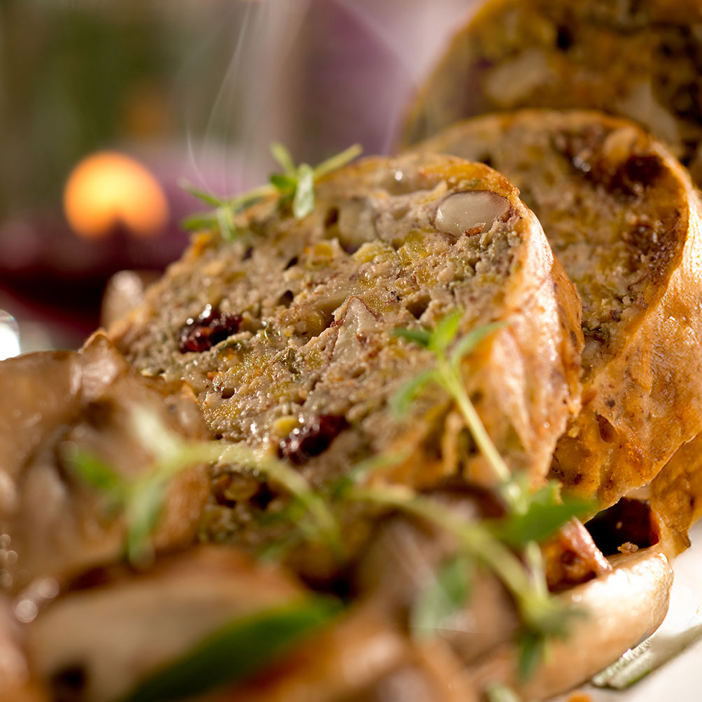 Nussbraten mit Pilzragout