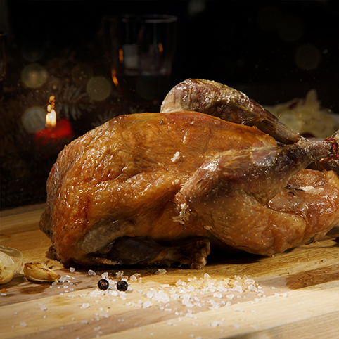 Perlhuhn mit Mandelplätzchen und Bittersalat