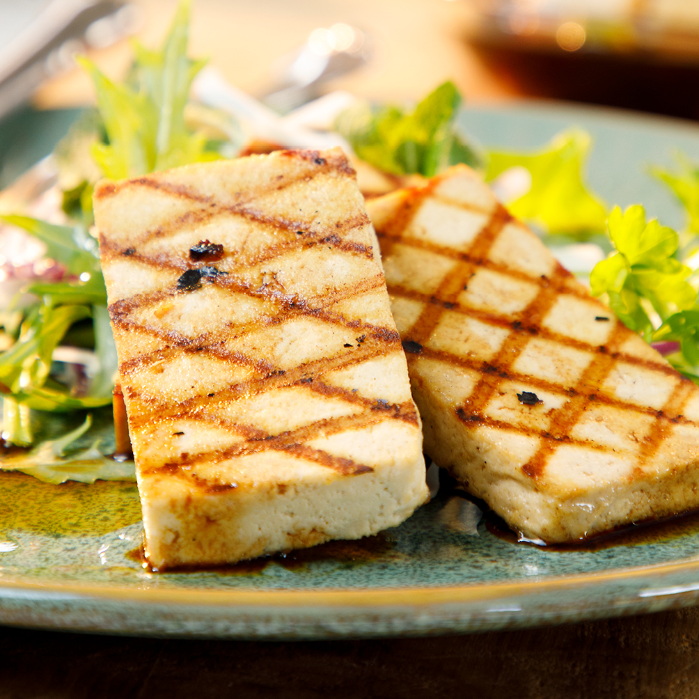 Restliche Sojasoße unterrühren und abkühlen lassen. Den Tofu in Scheiben schneiden und hineingeben. Für 3 – 4 Stunden marinieren, ab und zu wenden. Anschließend grillen.