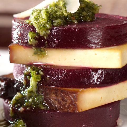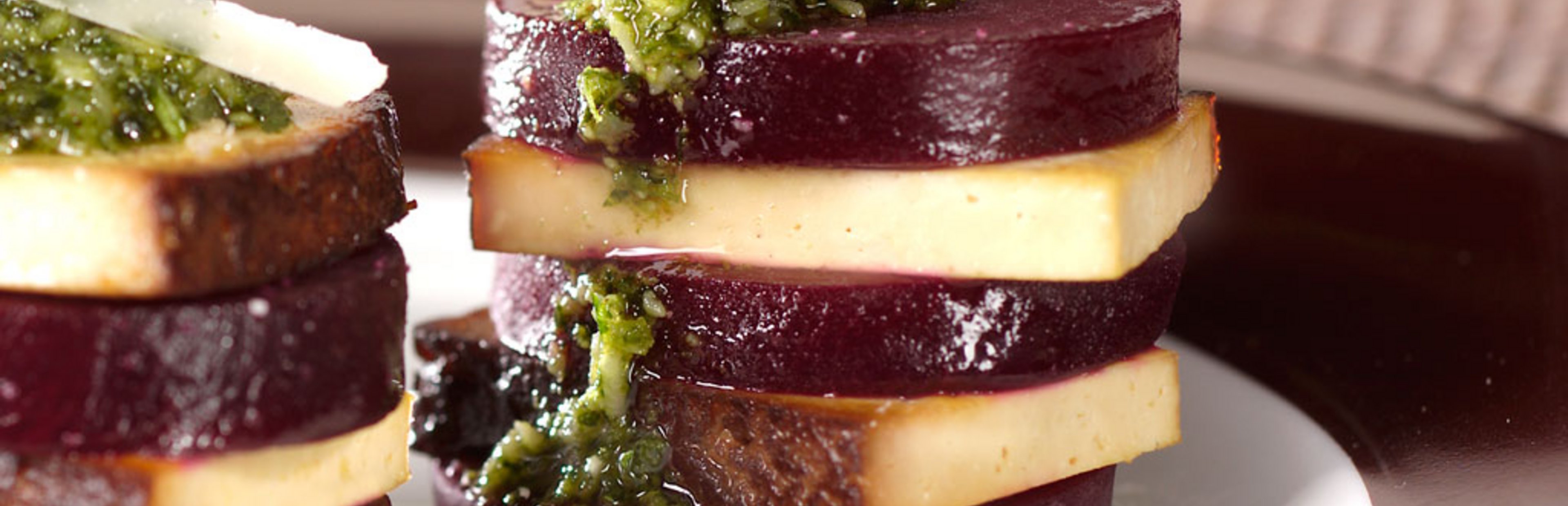 Rote Beete-Tofu-Türmchen mit Pesto