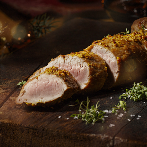 Das Filet salzen und pfeffern und mit dem Senf einreiben. In einem Bräter in etwas Öl von allen Seiten scharf anbraten. Aus dem Bräter nehmen und im vorgeheizten Backofen bei 175° C ca. 10 Minuten garen.