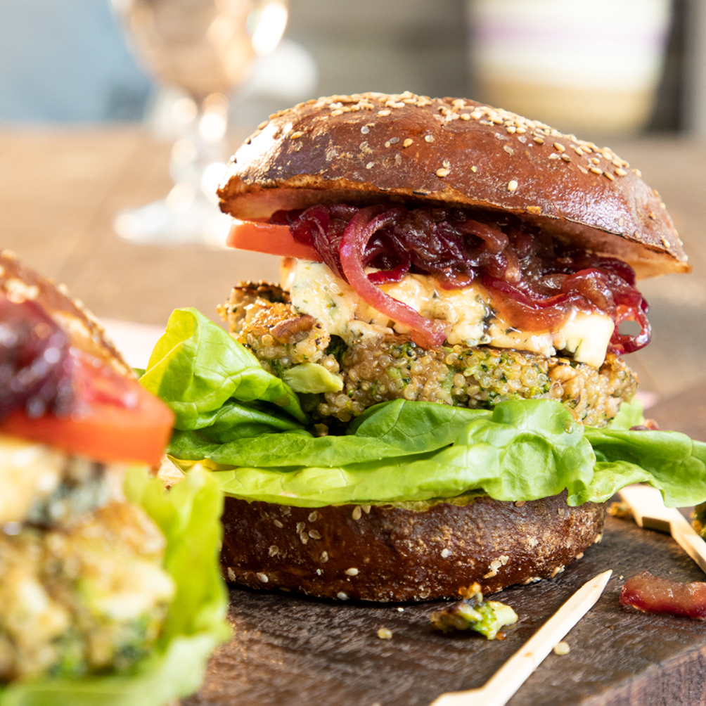 Sommerlicher Burger mit Quinoa-Brokkoli-Patty