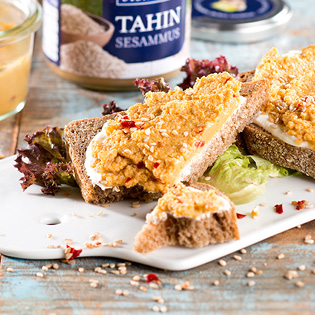Süßkartoffel schälen und würfeln. Öl in einem Topf erhitzen, Süßkartoffelwürfel zugeben und ca. 5–8 Min. weich dünsten. Das Kokosmus im Wasserbad leicht erwärmen und kräftig umrühren. Süßkartoffel, Tahin, Kokosmus, Zitronen- und Orangensaft pürieren und mit Salz, Curry und Chili abschmecken. FERTIG!