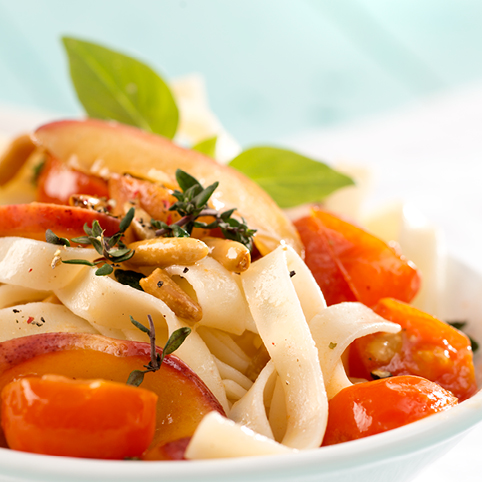 Tagliatelle mit Tomaten-Nektarinen-Sugo