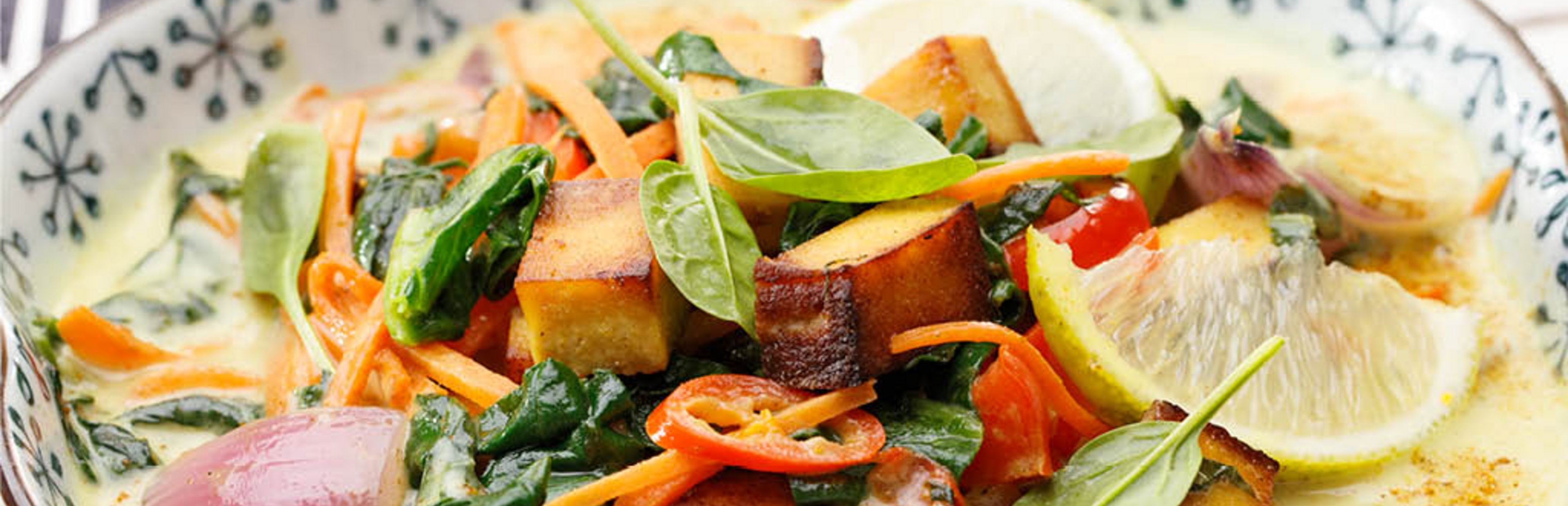 Dann den Spinat, die Kokosmilch, Curry, Sesam und Chilipulver unterheben und mit Deckel ca. 6 – 8 Minuten garen. Mit Salz, Pfeffer und Limette abschmecken. Dazu Basmatireis servieren.