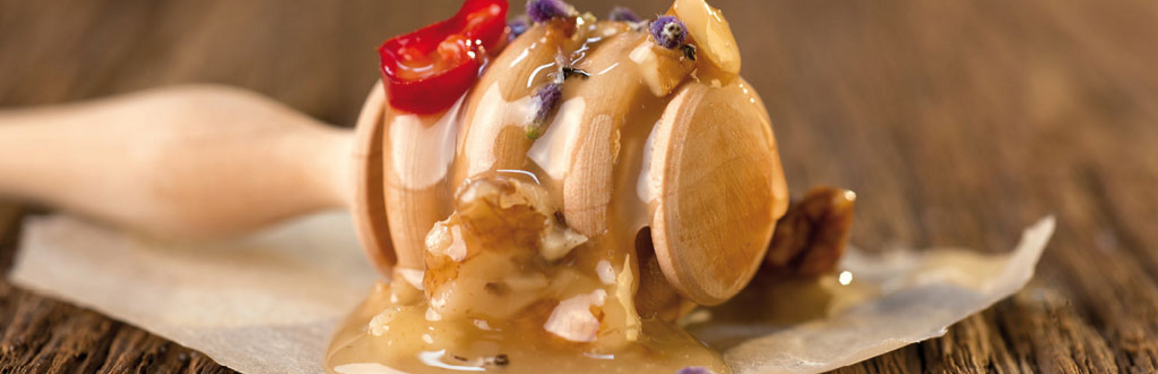 Je nach Geschmack fein geschnittene Chilistreifen (0,5 1 TL) und Walnusskerne in den Honig geben.