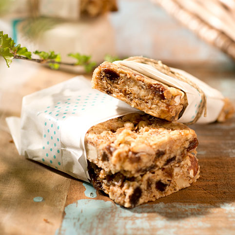 Ahornsirup, Butter und Kuvertüre in einem Topf erwärmen, bis sich die Kuvertüre aufgelöst hat. Alle Zutaten hinzufügen und miteinander vermegen. Ein Backblech mit Backpapier auslegen und die Masse fingerdick darauf streichen. Mit einem zweiten Backpapier abdecken und mit einem Nudelholz fest andrücken. Im Kühlschrank aushärten lassen und anschließend in gleichmäßige Riegel schneiden.