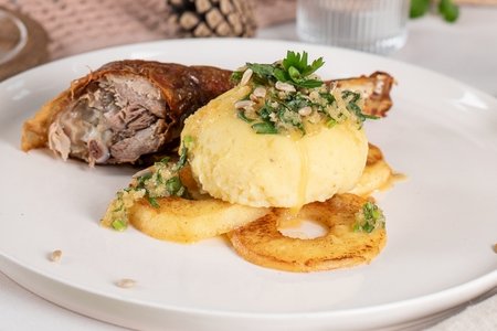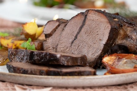 Hirschbraten mit Smashed Potatoes